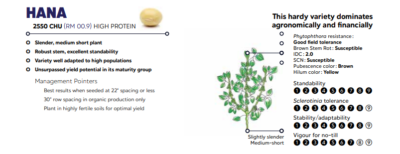 00.9 relative maturityThis is a hardy Non GMO conventional soybean variety that dominates both Agronomically and Financially